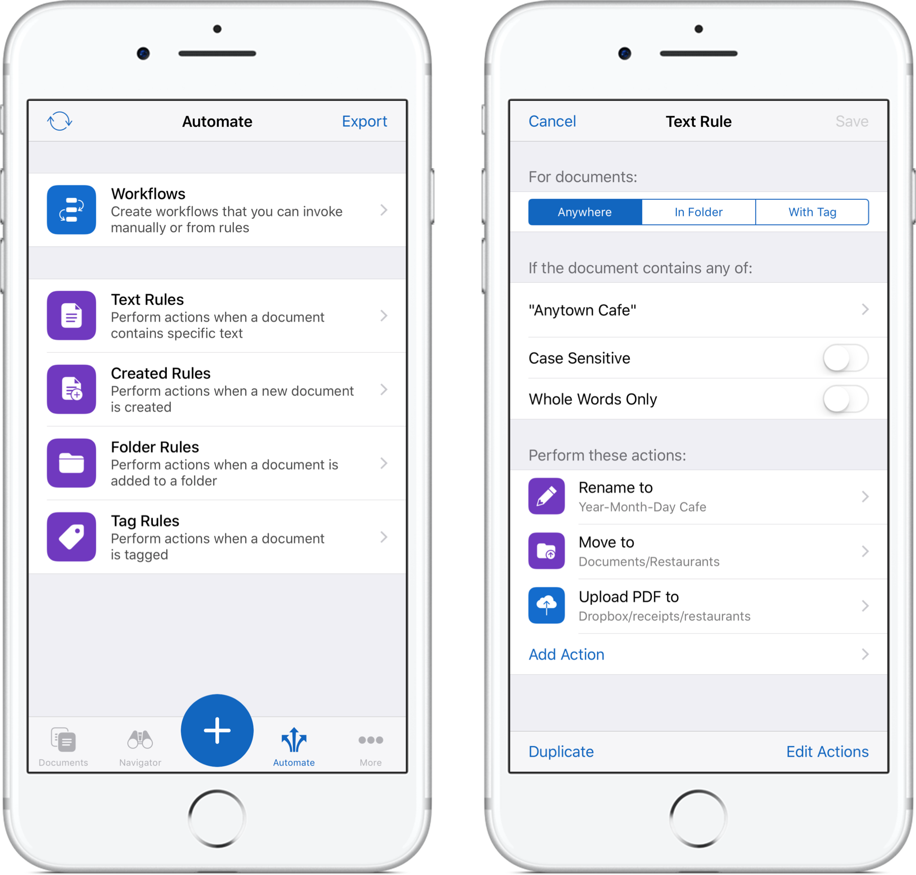 Powerful text rules and built-in text recognition let you automatically process scans based on their content.