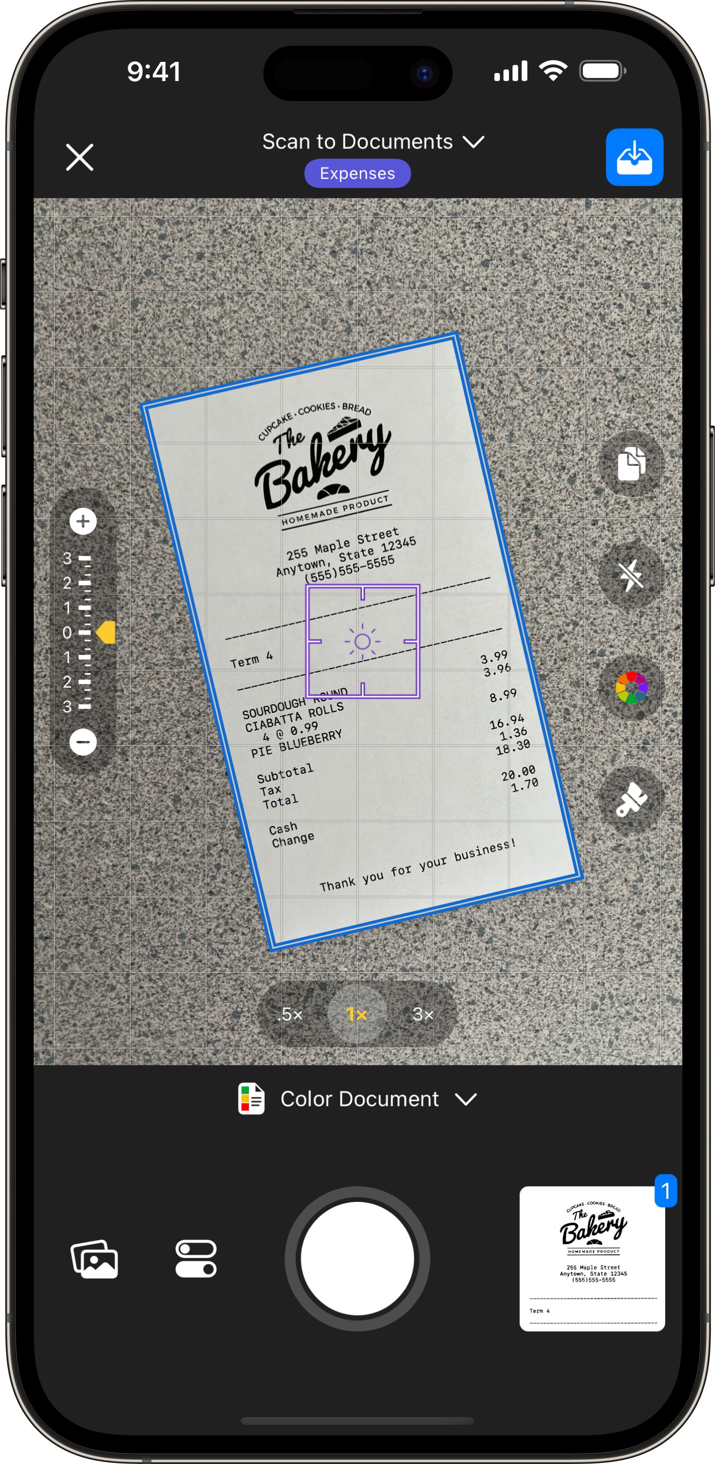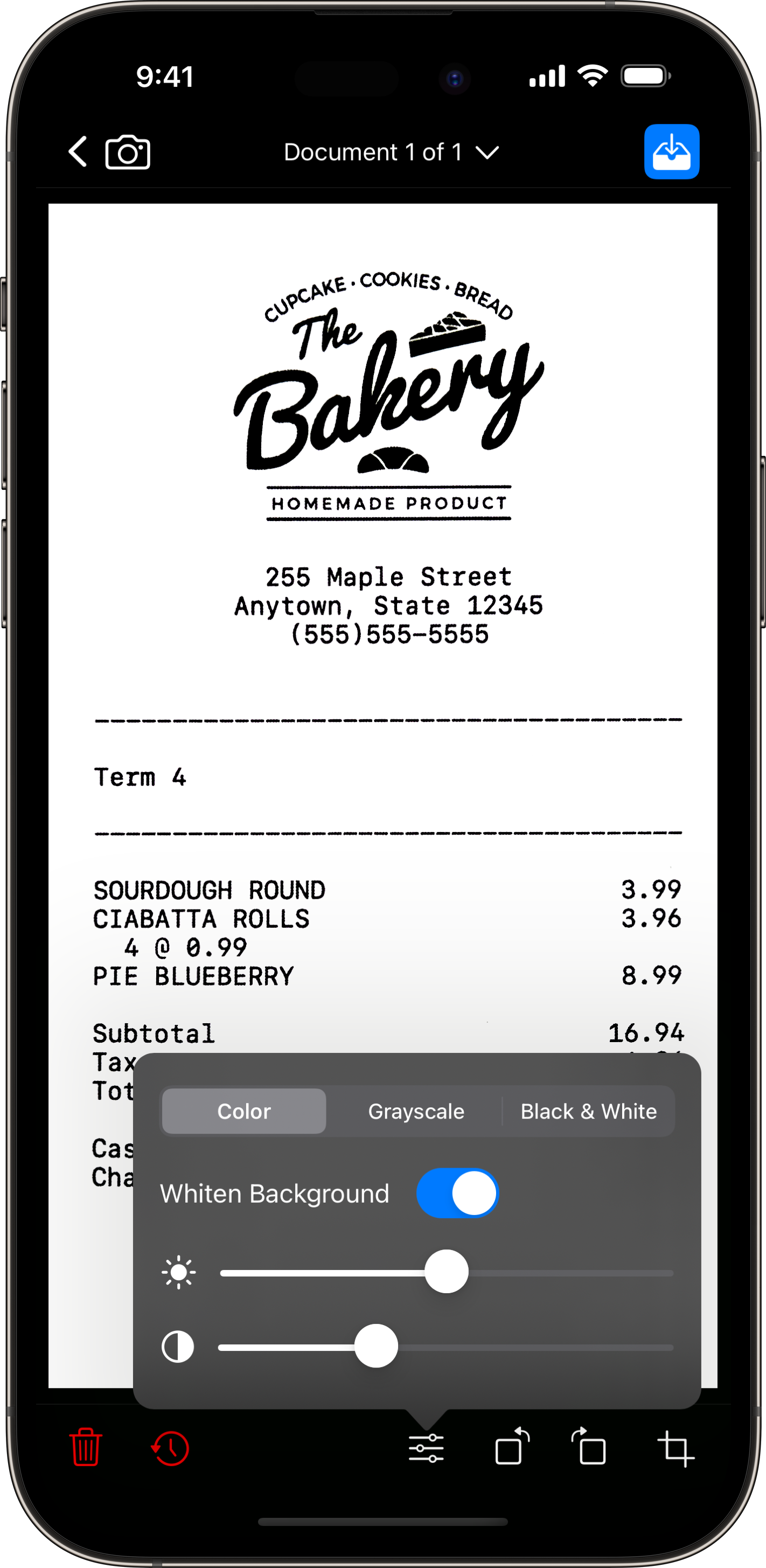 Snap crisp, clean, paper-white scans with the camera on your iPhone or iPad.