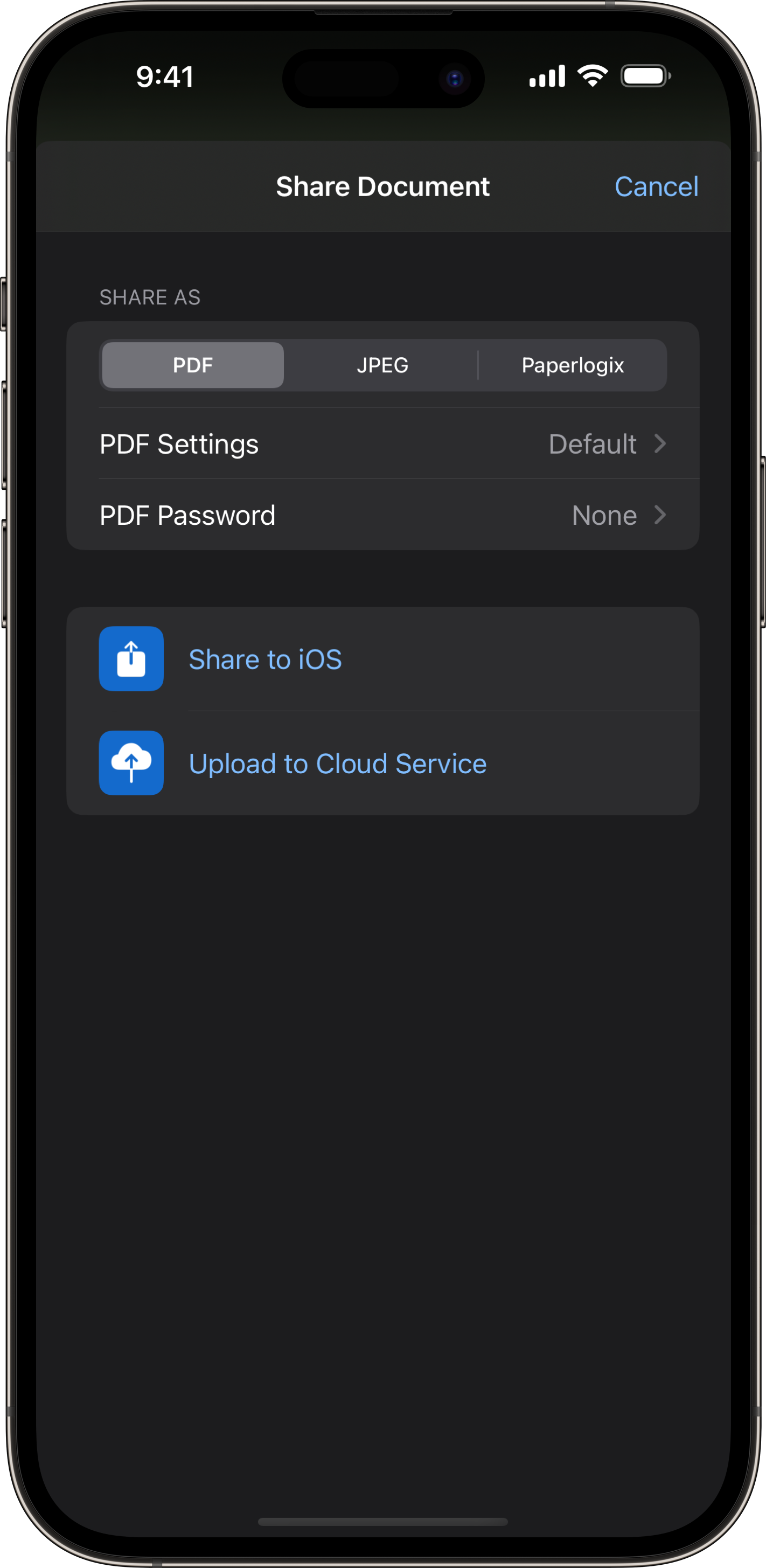 Share your scans to iOS, Dropbox, Google Drive, OneDrive, Evernote, or Box.